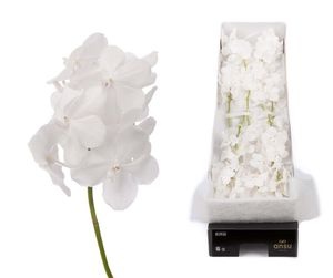 The Vanda Diamond White exudes pure elegance with its bright white, crystal-like flowers. The fresh color and refined shape give her a beautiful appearance.