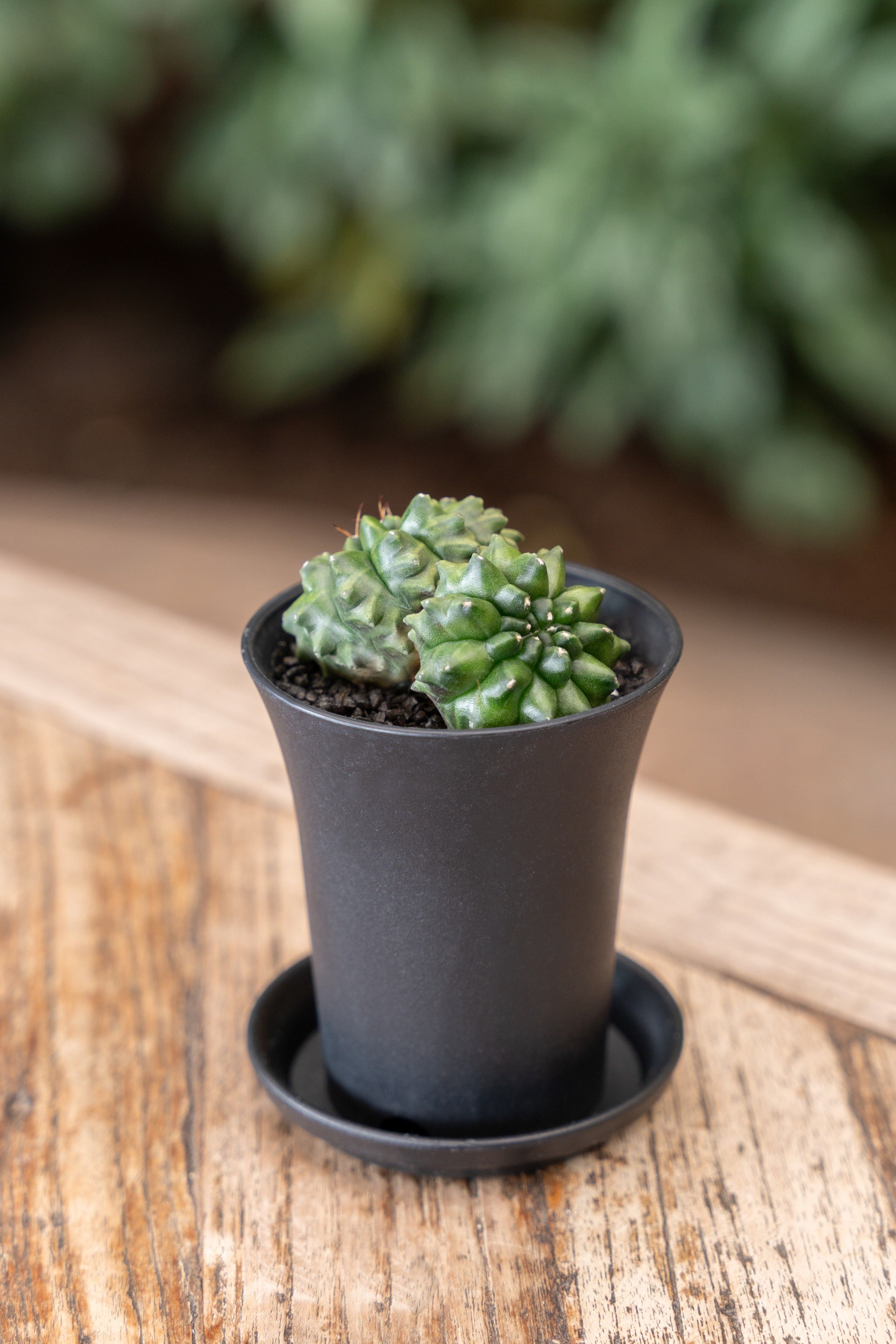 Lichtgroene 'spineless' cactus in een unieke vorm. Beschikbaar in P7.5cm, P10cm en P12cm
