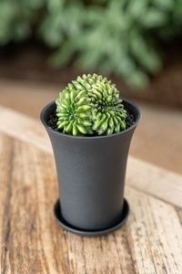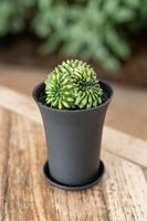 Lichtgroene 'spineless' cactus in een unieke vorm. Beschikbaar in P7.5cm, P10cm en P12cm