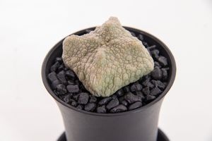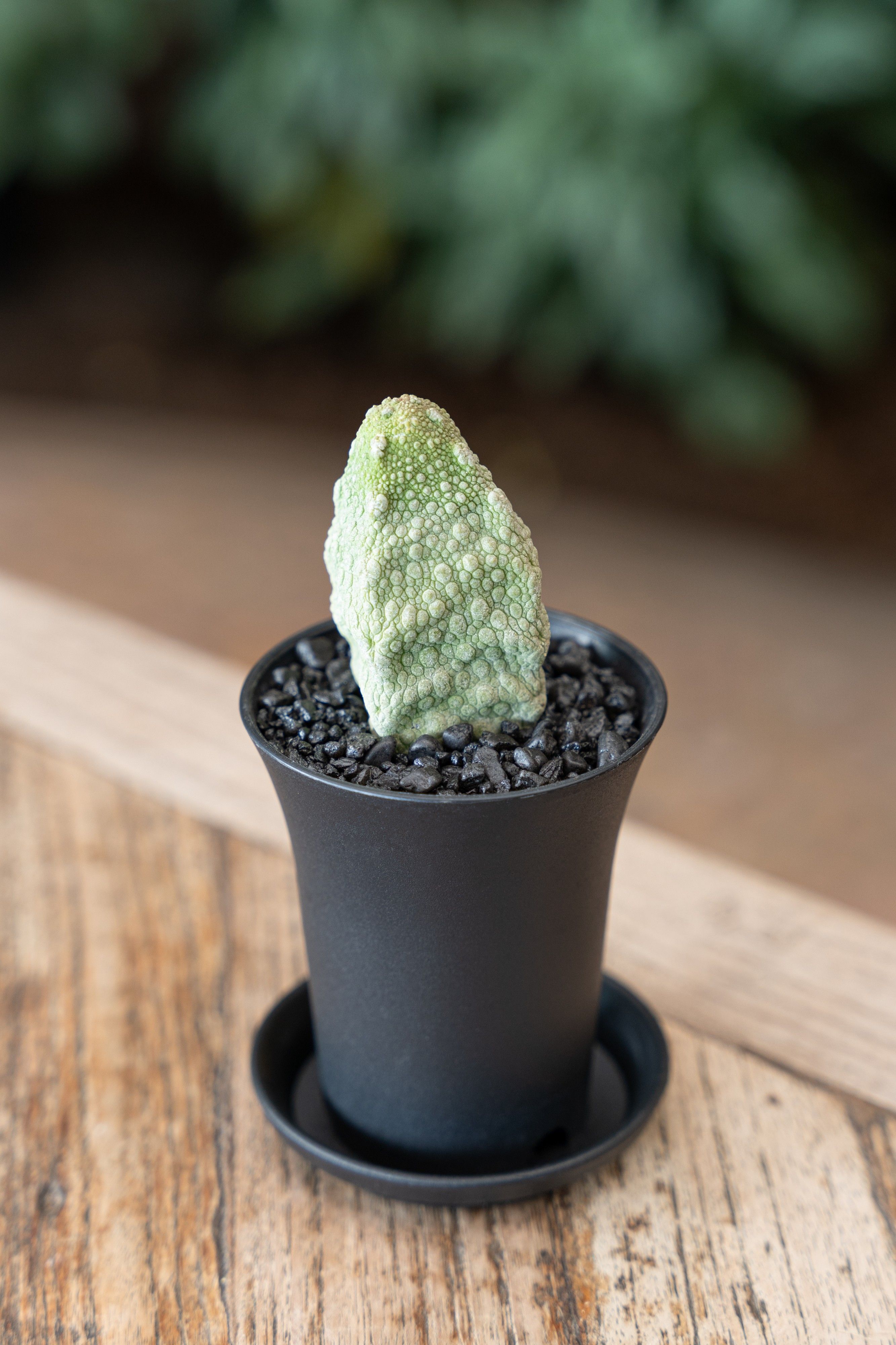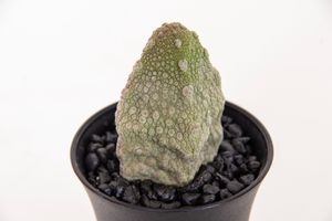 De Pseudolithos Migiurtinus is een unieke, dwergachtige, bladloze cactus die op een steen lijkt, met een wrattige, groenachtige stam. Beschikbaar in P7.5cm